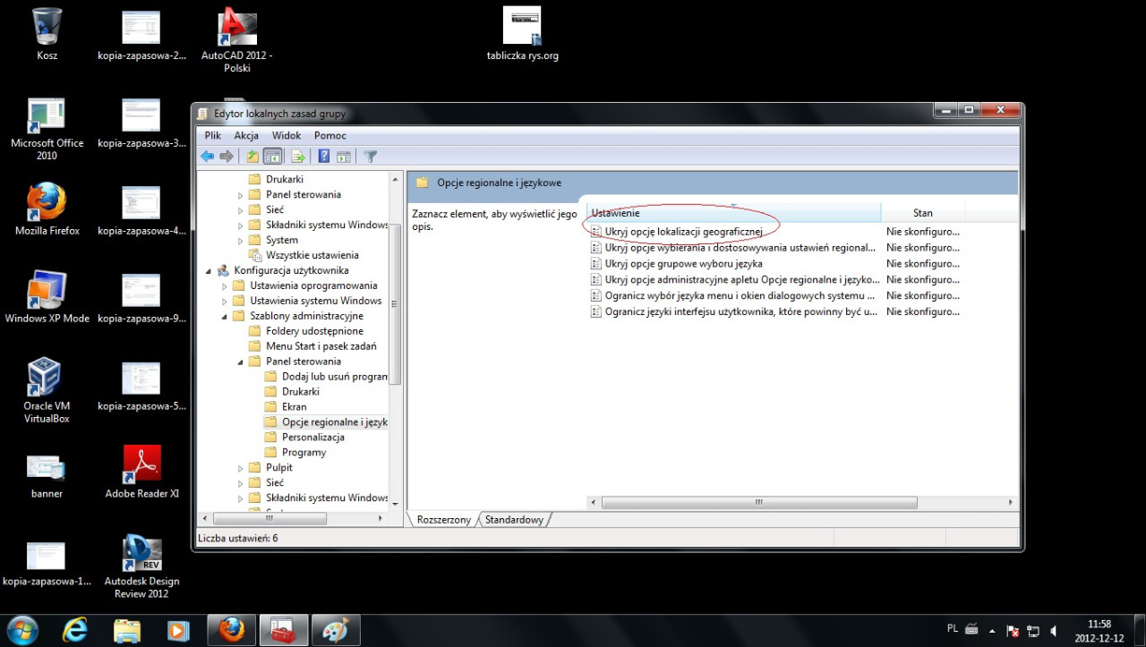 Panel sterowania--->Opcje regionalne i językowe----->Ukryj opcje lokalizacji geograficzne---->edytuj------>włącz--->zastosuj